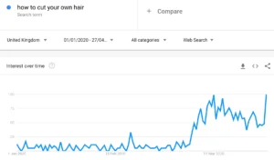 Since lockdown began on the 23rd March 2020, the UK’s been stuck at home with only thoughts, restless activity, and shaggy hair for company. As a result, we thought we’d have a look at some of the things people have been searching for while stuck at home. So here it is: the Google search trends that are marking this unprecedented* time.