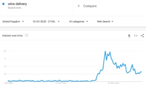 This is excellent. Peaking on the 24th March, the day after Boris announced full lockdown for the UK, it seems many of us looked straight to our wine racks…our empty wine racks! Damn – if we can’t go to the wine, can the wine come to us?