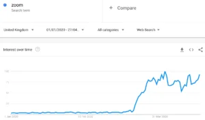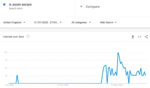 This search peaked on the 1st April, the very day the BBC published its article on Zoom’s security and privacy measures. Interestingly, as this story progressed, the number of searches for ‘is zoom secure’ dropped, while searches for ‘zoom’ continue to increase. It seems convenience once again outweighs data concerns.
