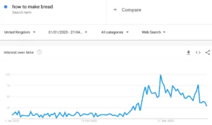 And among the bread baking, the virtual quizzes and the bowl cuts, people are rising to the challenge. Much has been said of the overwhelmingly positive community spirit that has awoken. And searches reflect the nation’s appetite for wanting to help.
